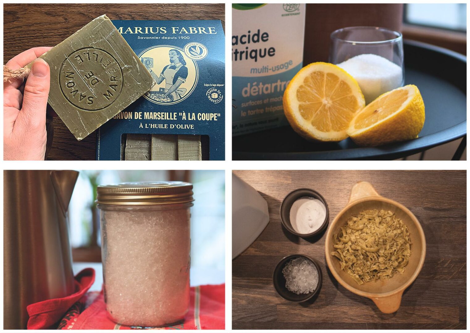 Tenez par exemple : le savon de Marseille, le citron, le savon noir, le bicarbonate de soude…
