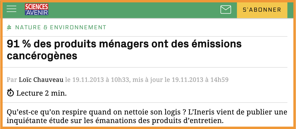 [1] https://www.francetvinfo.fr/sante/environnement-et-sante/44-des-produits-d-entretien-contiennent-des-substances-toxiques-alerte-l-ufc-que-choisir_4211445.html